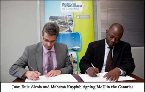 Canarias 28th March, 2011, the Instituto Tecnológico de Canarias (ITC), represented by the Chief Executive Officer, Juan Ruiz Azola and the ECOWAS Regional Centre for Renewable Energy and Energy Efficiency ECREEE, represented by the Executive Director Mr. Mahama Kappiah, signed a Memorandum of Understanding by which they formalize aseries of joint actions between the two institutions in the field of renewable energy and water technologies.
