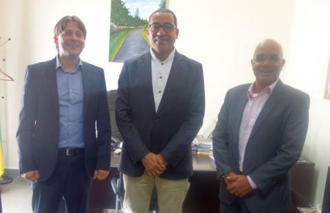 Durante o encontro com o Sr. Ministro das Finanças, Comércio e Economia Azul, Sr. Américo d’Oliveira Ramos, este realçou a urgência e a necessidade de reduzir a atual dependência do país dos produtos petrolíferos importados, com impacto direto na competitividade e produtividade de setores económicos cruciais para o país, nomeadamente o agro-negócio, a pesca e o turismo.